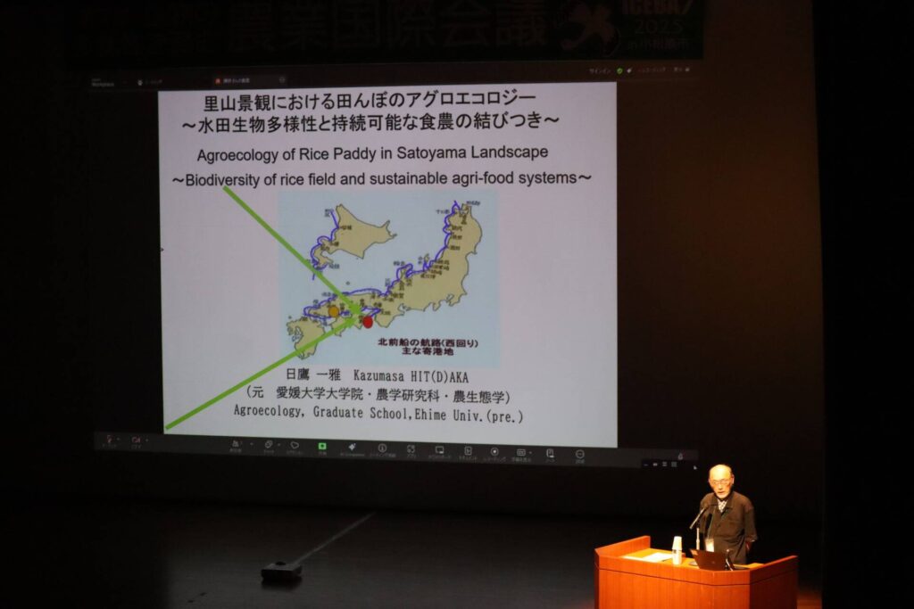 ICEBA(アイセバ/生物の多様性を育む農業国際会議)は、生物多様性を基盤とした地域循環型農業技術の確立と、国内外への普及を目指す国際会議です。2025年7月12日・13日には、7回目となるICEBA7が徳島県小松島市で開催されました。多彩なプログラムの中から、日鷹一雅さんの基調講演を紹介します。