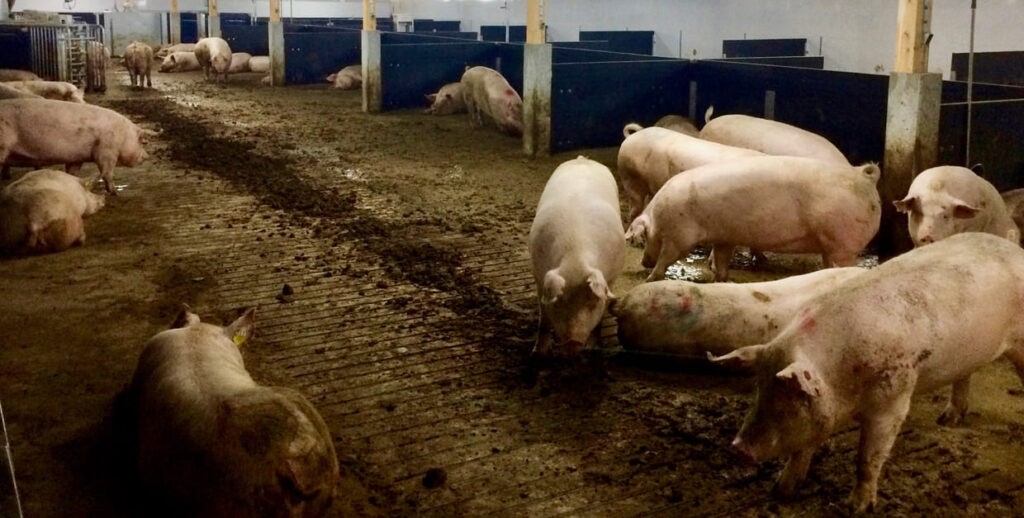 豚たちは、おがくずを60cmの深さに敷き詰めたバイオベッドを掘ったり、走り回ったりして過ごします。