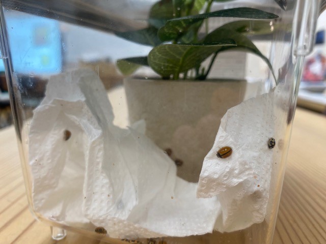 天敵の虫は販売されていますが、えさを与えられて育った虫は害虫を捕る能力が低いそうです。また、被害が出始めてからの注文では間に合いません。外来種の虫が増えていることもあり、「地域の生態系を考えて、できるだけ土着の虫、地域に生息する虫を使いたいんです」と岡本さんは話します。