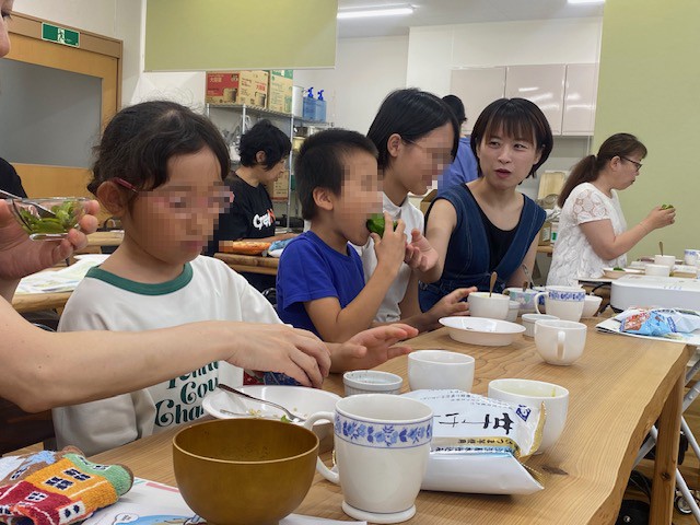 この日、岡本さんと一緒にやってきた従業員は「ヒメカメノコテントウ」。参加した子どもたちは虫かごを一所懸命のぞき込み、興味津々です。「アゲハチョウの幼虫の被害には何がいいですか」という質問もありました。試食は「ピーマン蒸しパン」と「丸ごとピーマン」。最初はびっくりした顔をしていた子も、苦みがなく甘いピーマンをおかわりして食べていました。