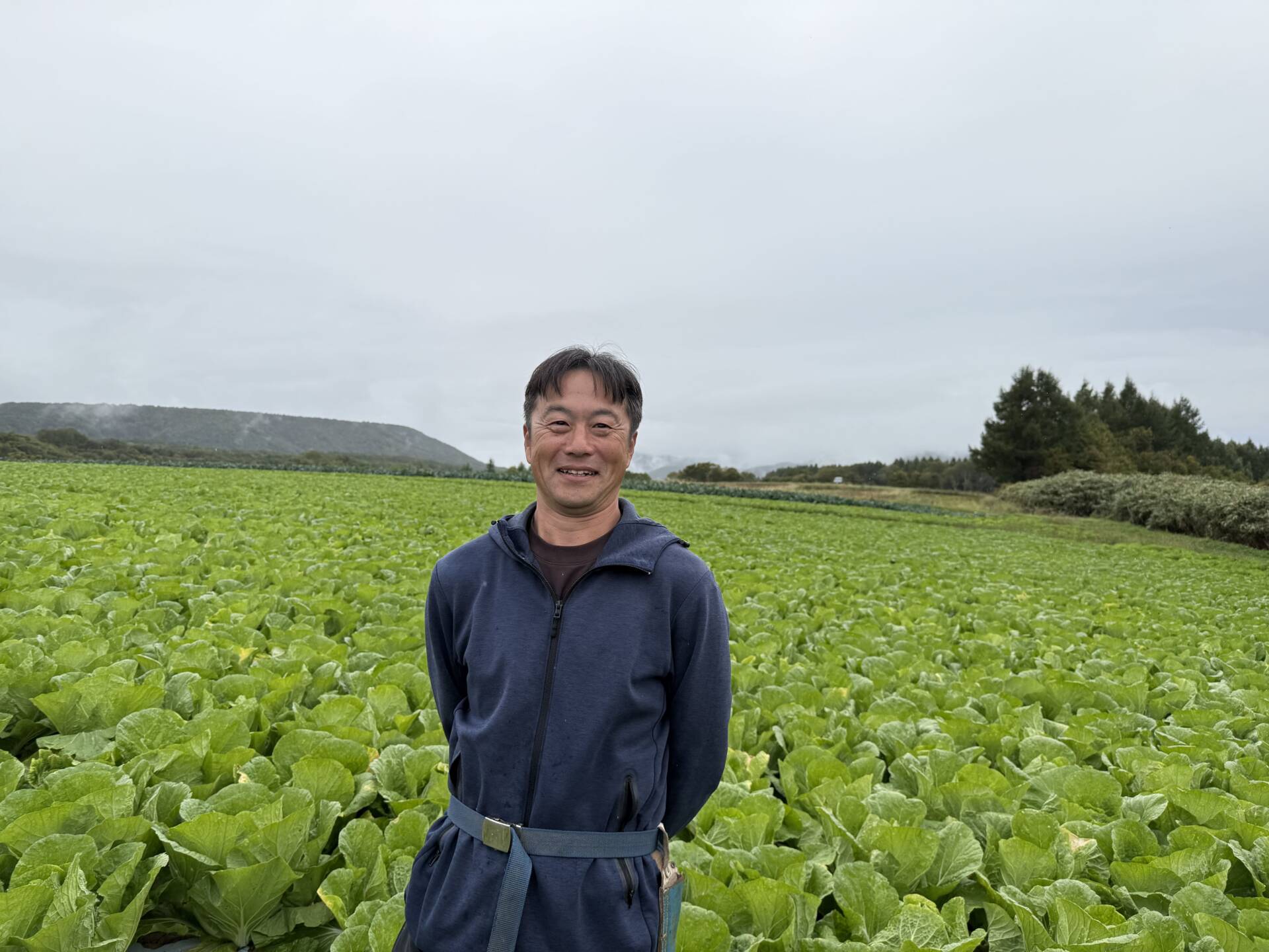八甲田山の南麓でレタスやキャベツ、白菜、サニーレタスなどの高原野菜を育て、有機栽培に取り組んでいます。理念は「みんなが幸せになれる野菜づくり」。「地球に感謝される農業を一緒にひろげていきましょう」と、佐藤拓郎さん
