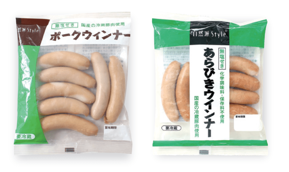鎌倉ハムクラウン商会は1970年代、食品添加物の開発が進んで効率重視の食べものが氾濫するなかで、「子どもたちのために安全なハムやウィンナーをつくってほしい」という消費者の要望に応え、発色剤を使わない「無塩せき」のハム・ウィンナーづくりを始めました。「自然派Style」のハム、ウィンナー、ベーコンは、手間をかけて肉そのものが持つ旨みと食感を最大限に引き出し、燻製には桜の木のチップを使っています。